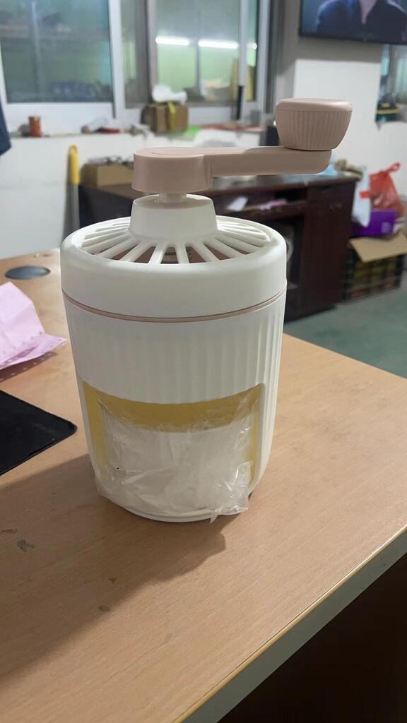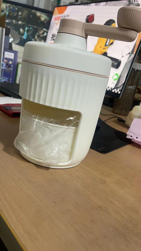 Close the lid and turn the handle to shave the ice into a soft, fluffy texture.